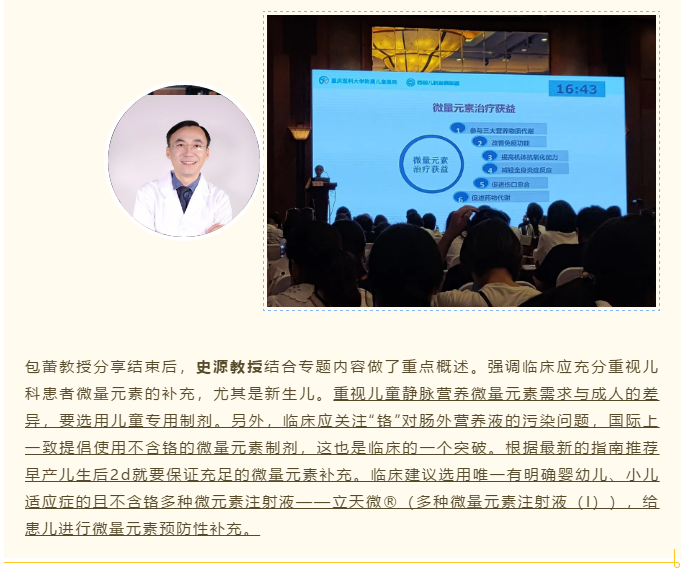 会议报道〡早产儿生后2d起,肠外营养应保证充足微量元素