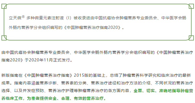 重磅:立天微®收录进《中国肿瘤营养指南2020》